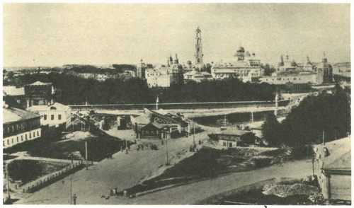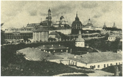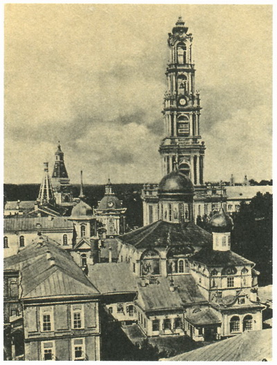 В конце XIX в. Троице-Сергиева Лавра по-прежнему была первым монастырем России, а в Сергиевском Посаде представляла собой как бы город в городе. За крепкими стенами и высокими башнями Лавры, вокруг свечи-колокольни, парившей над Посадом, денно и нощно горели неугасимые лампады в пятнадцати соборах и церквах, в келейных корпусах спасались от мирской суеты три сотни монахов и послушников, в мастерских и службах трудились десятки рабочих.