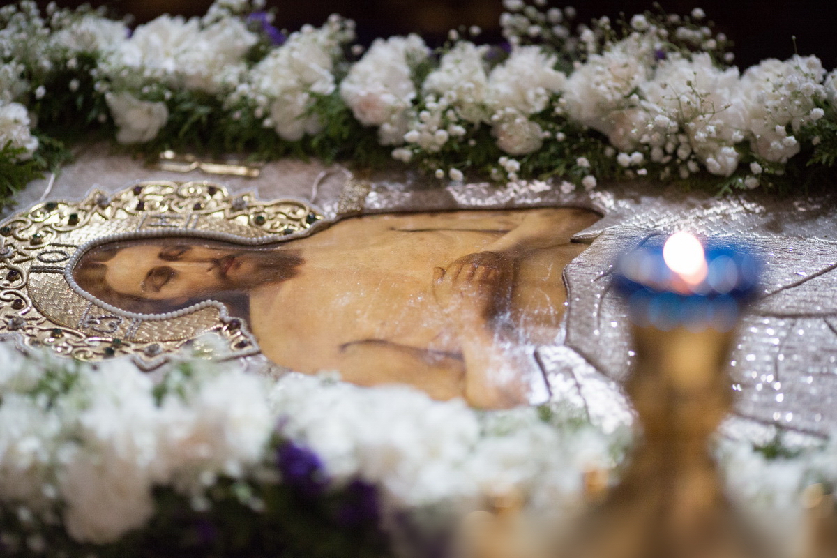 Слезоточная рыдания накрапляющи на Тебе, о Иисусе, Чистая матерски вопияше: како погребу Тя Сыне? — Иосифе преблаженне, погреби тело Христа Жизнодавца!.. О чудес странных, о вещей новых! Дыхания Моего Податель бездыханен носится, погребаем руками Иосифовыма ! — Свет очию Моею, сладчайшее Мое Чадо! Како во гробе ныне покрываешися? — О ужаснаго и страннаго видения, Божий Слове! Как земля Тя покрывает? — О Божий Слове! О радосте Моя! Како претерплю тридневное Твое погребение? Ныне терзаюся утробою матерски! — Когда вижду Тя, Спасе, безлетнаго Света, Радость и Сладость сердца Моего?.. — Едина (из) жен родих Тя кроме болезней, Чадо, болезни же ныне терплю, страстию Твоею, нестерпимыя!.. Виждь ученика, егоже любил ecu, и Твою Матерь, Чадо, и даждь вещание сладчайшее... — Ужасеся солнце, видевшее Тебе, невидимый Свет, Христе Мой, во гробе скрываема, бездыханна же, и помрачи свет... — Иисусе сладкий Мой, и спасительный Свет! Како во гробе темном скрылся ecu? О несказаннаго и неизреченнаго терпения!