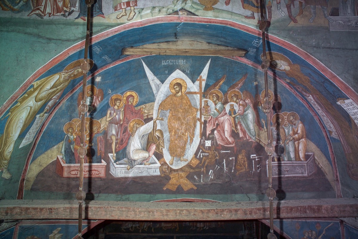 Тропари. Неповредивший заключенной (утробы) Девы в рождении Твоем, Христе, Ты восстал и из гроба, сохранив целыми печати его, и отверз нам райские двери (Мф. 27; 66, Иез. 44; 2).