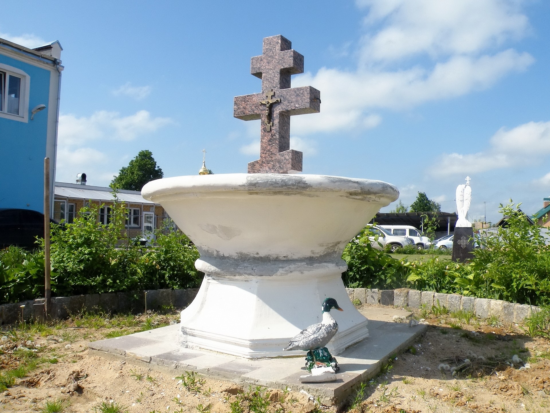 В 50 метрах от храма был святой источник. Его помнят пожилые монахи и жители села. Этот источник сравнивали с Силоамской купелью. В 1961 году эта территория была отдана театральному обществу под химзавод. В святой источник вылили целую цистерну мазута и сделали на этом месте огромную свалку. Чтобы убрать эти нечистоты понадобится, наверное, 1000 машин. Источник был на вершине горы; с одной стороны горы – обрыв, и по этому склону ниже от источника пробились новые ключи. Подойти к ним трудно, подъем очень крутой, но люди спускаются туда с помощью лыжных палок и набирают воду. Эту воду сдавали на анализ, санэпидстанция дала заключение, что такой чистой воды в Сергиевом Посаде нет. Один состоятельный бизнесмен предложил храму свою помощь, пообещал очистить источник, но воду он собирался разливать в бутылки и продавать. Конечно, не разрешили.