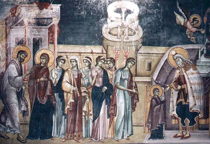 Введение во храм сегодня совершилось,Для Девы в небеса отверзнуты врата.В миру разлита неземная милость,Чтобы исчезли смута и тщета.