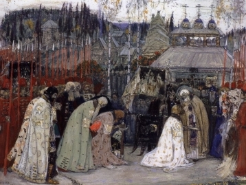 Посланцы преподобного Сергия приносят великому князю Димитрию Ивановичу утешительную грамотку и просфору от великого старца