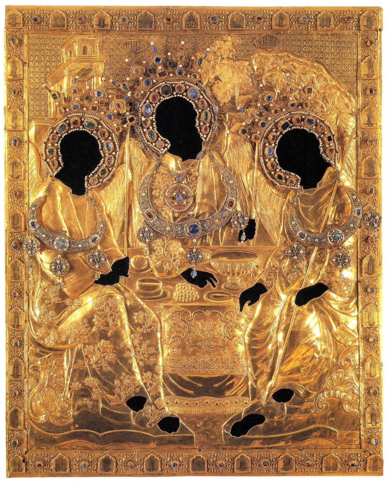 Оклад Троицы прп. Андрея Рублева из червонного золота