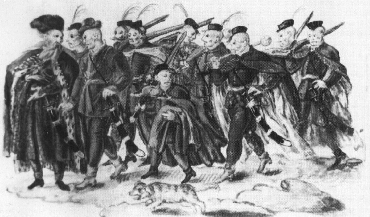 Польские гайдуки в походе во главе со своим командиром и офицерами. Данцигский геральдический альбом Микаэля Эйденрейча, 1601-1612 гг. (Библиотека Польской академии наук в Корнике)
