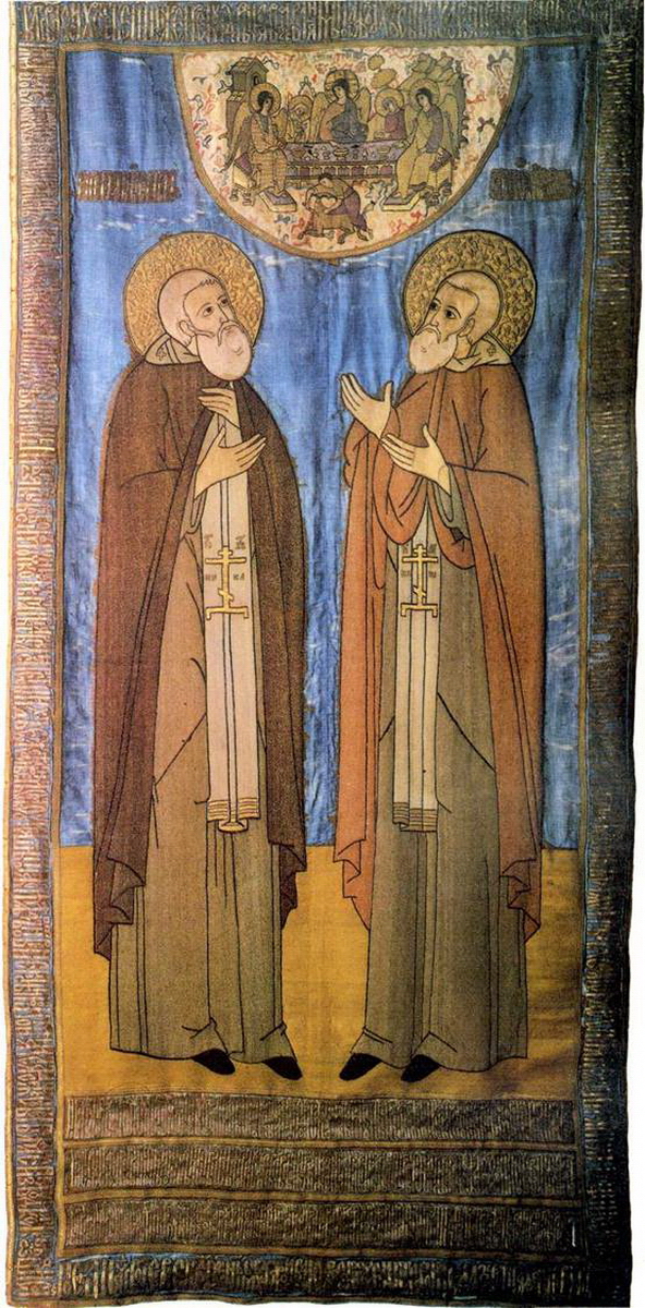 Преподобные Сергий и Никон Радонежские. Покров 1569-1592 гг. (Собрание Троице-Сергиева монастыря).