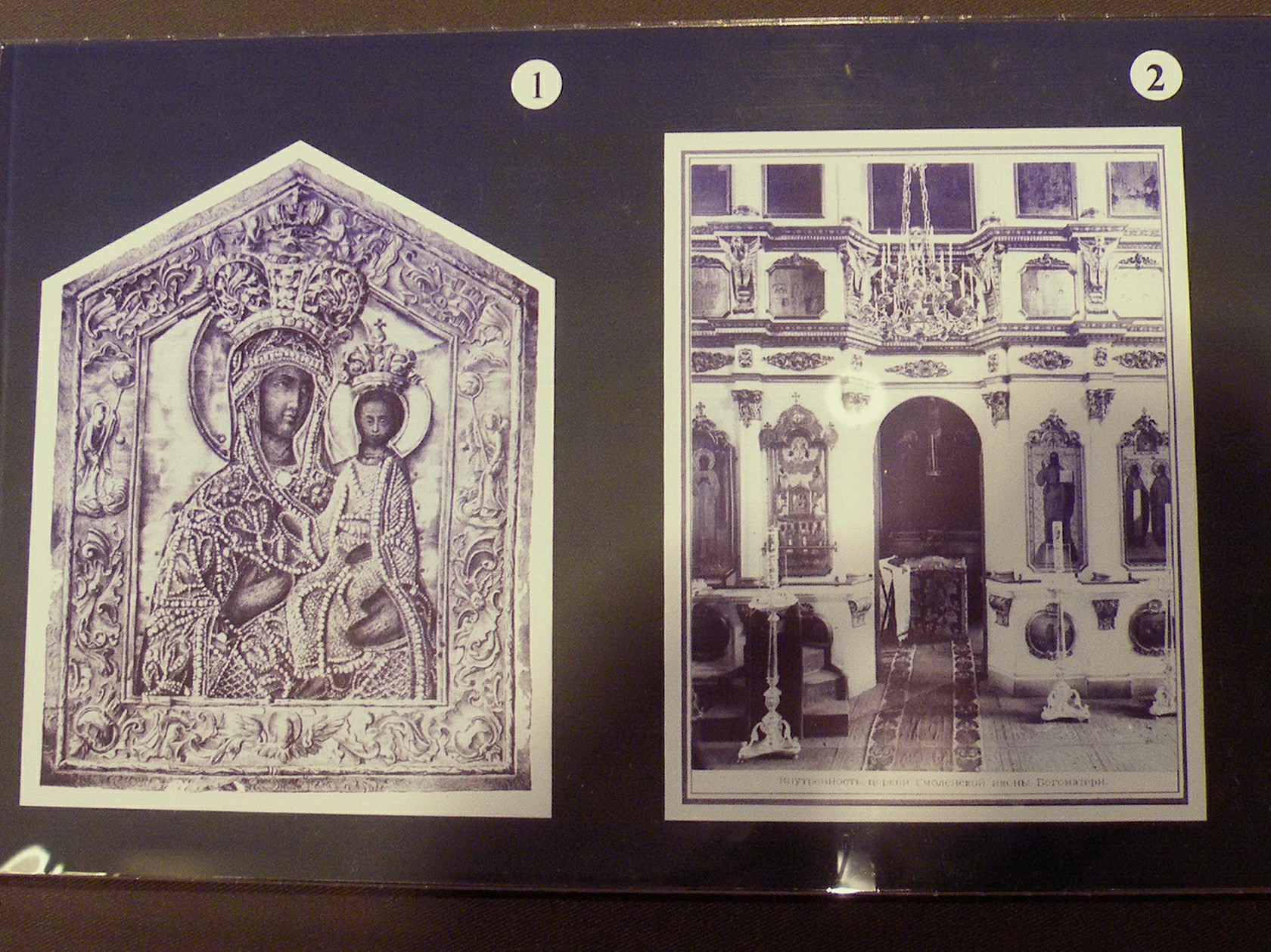 Экспозиция была подготовлена научными сотрудникам исторического отдела музея Т.Ю. Токаревой и Н.В. Холодковой. Работники заповедника собрали подробную информацию о драматической судьбе этой едва ли не единственной каменной иконы Божией Матери «Одигитрия».