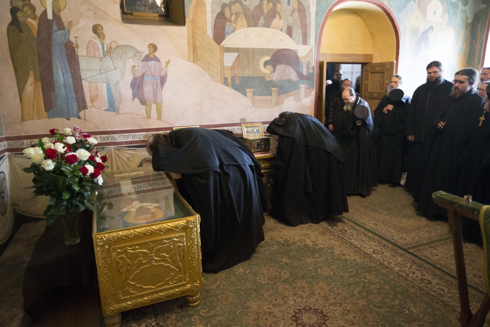 В прославленной российской обители, где почивают мощи святителя, прошли торжественные богослужения. Архиепископом Сергиево-Посадским Фегностом и братией монастыря в священном сане в Успенском соборе Лавры было отслужено полиелейное богослужение и Литургия Преждеосвященных Даров, после которой в Серапионовой палатке святителю было провозглашено торжественное славление у его святых мощей.