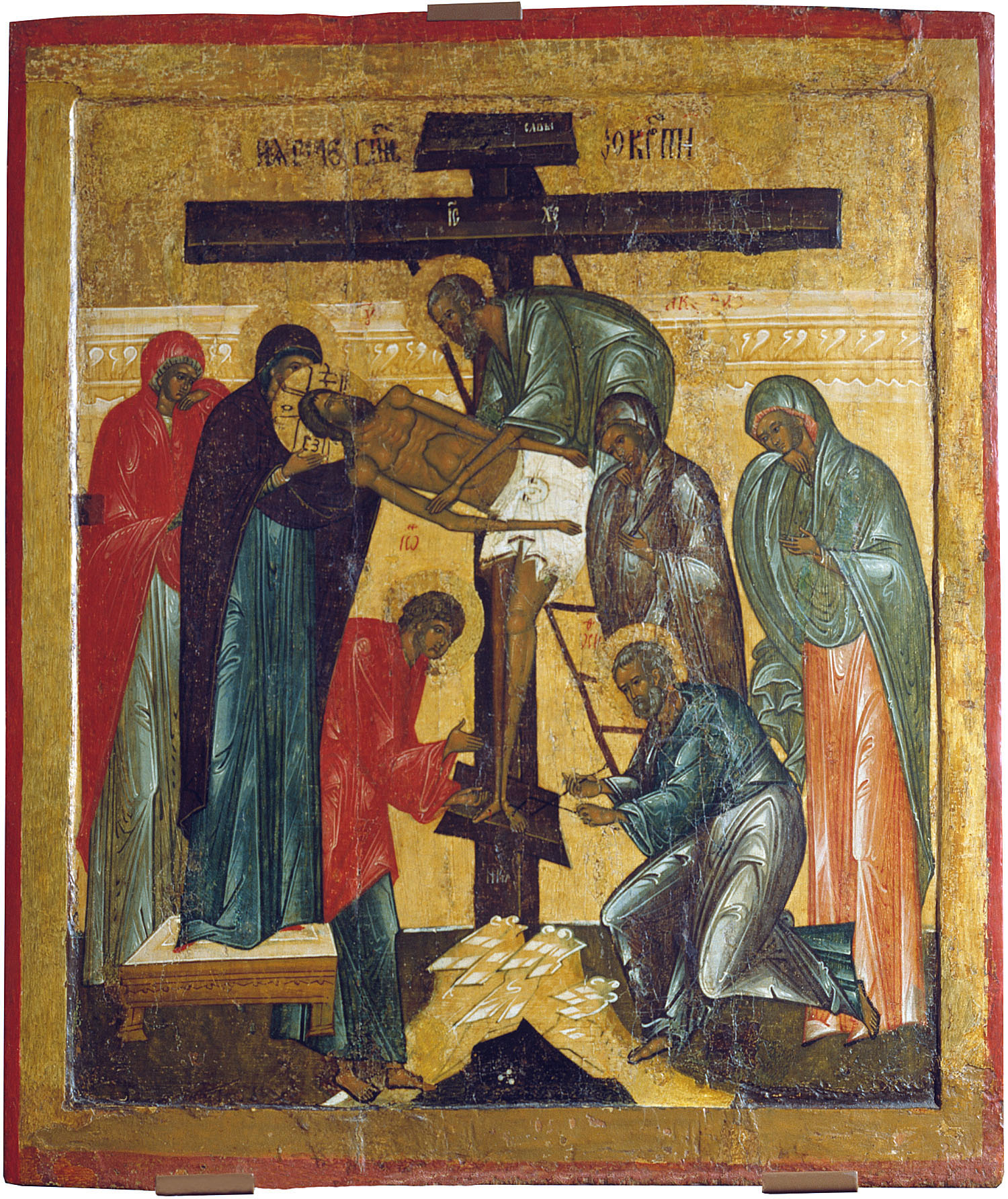 [9] «Именитый Иосиф, сняв с Креста пречистое Твое Тело, обвив (Его) чистой плащаницей и умастив благовониями, положил в новом гробе».
