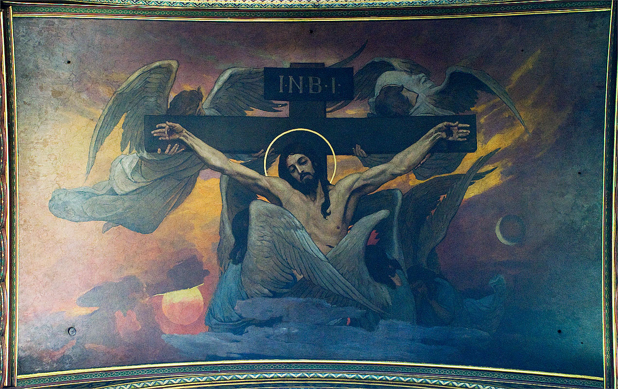 В довершение ко всем издевательствам, Пилат написал и надпись на кресте, гласившую: Иисус Назорей, Царь Иудейский (Ин. 19:19). Хотя (первосвященники) и не позволяли Пилату писать так, но что Он говорил: (Я Царь Иудейский), однако Пилат возразил: что я написал, то написал (см.: Ин. 19:21-22). Потом Спаситель произнес: жажду, — и Ему дали иссоп с уксусом. Сказав: совершилось! — и преклонив главу, (Он) предал дух (см.: Ин. 19:28-30).