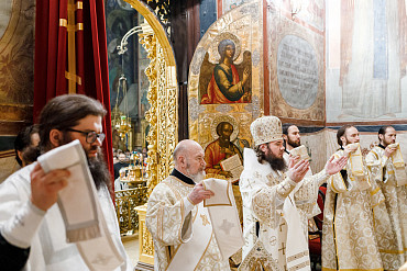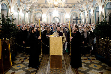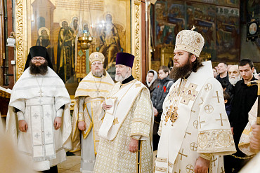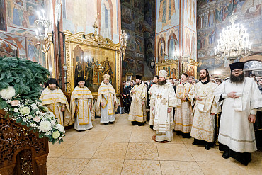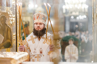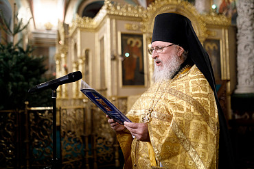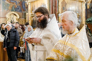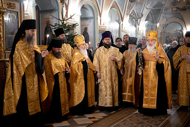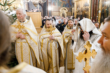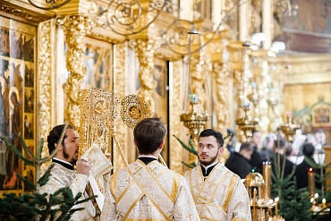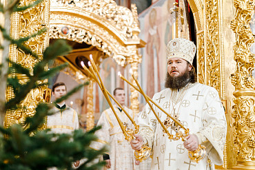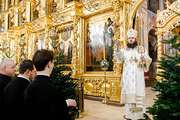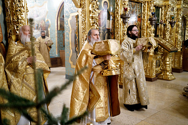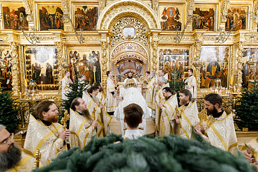 6 и 7 января в храмах Троице-Сергиевой Лавры прошли торжественные богослужения в честь праздника Рождества Христова. Наместник епископ Сергиево-Посадский и Дмитровский Фома совершил всенощное бдение и Божественную литургию в Успенском соборе Лавры.