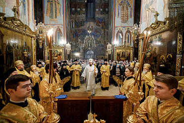 В первую подготовительную Неделю Великого поста наместник Троице-Сергиевой Лавры совершил воскресное богослужение.