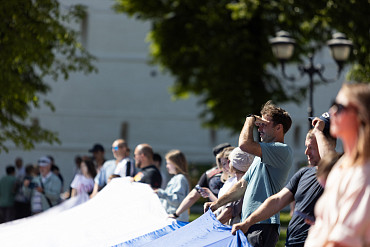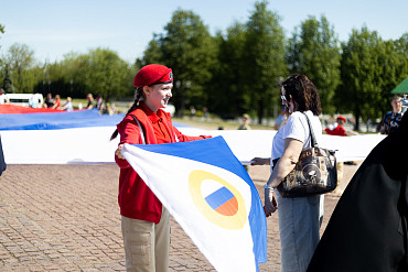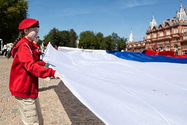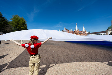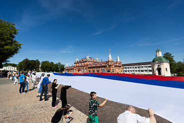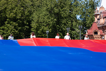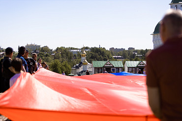 На площади перед Лаврой развернули самый большой флаг России