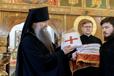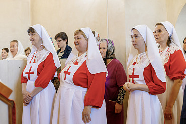 Наместник обители вручил сестрам милосердия форменные фартуки и белые платки с крестом