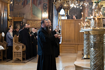 Братия Троице-Сергиевой обители почтила память мучеников Фотия и Аникиты совершением Божественной литургии