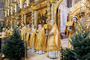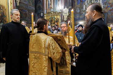 4 и 5 января в Лавре прошли воскресные богослужения, на которых молитвенно почтили святых отцов — сродников по плоти Иисуса Христа. Всенощное бдение в Успенском соборе возглавил архим. Агафодор (Маркевич). Позднюю Литургию возглавил архим. Макарий (Веретенников).
