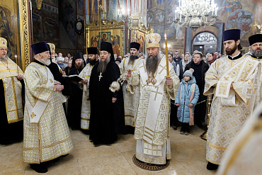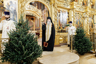 6 и 7 января в Лавре прошли богослужения в честь двунадесятого праздника Рождества Христова. Всенощное бдение и ночную Литургию в Успенском соборе совершил епископ Сергиево-Посадский и Дмитровский Кирилл.