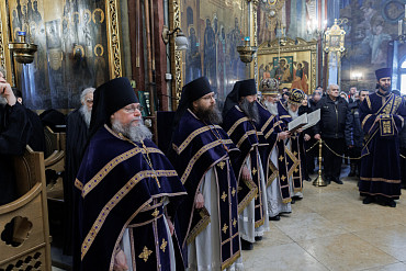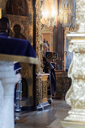 7 марта в Лавре прошли богослужения утрени, часов, изобразительных, вечерни с Литургией Преждеосвященных Даров и чтением канона вмч. Феодору Тирону. Службу возглавил архим. Макарий (Веретенников).