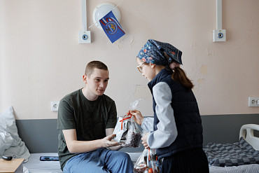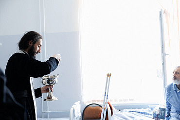 Наместник Лавры посетил раненых в филиале госпиталя им. А.А. Вишневского
