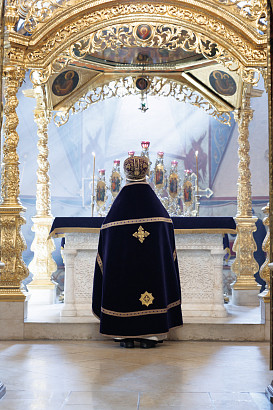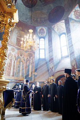 19 апреля в Лавре прошли уставные богослужения Великой Субботы. Службу часов, изобразительны и вечерню с Литургией Василия Великого в Успенском соборе возглавил архим. Агафодор (Маркевич).