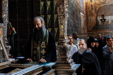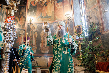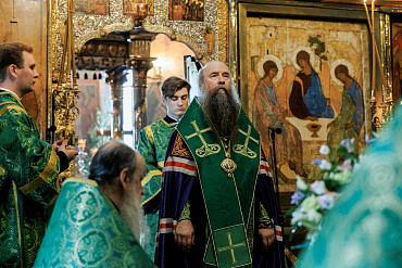 7 июня в Лавре совершили акафист и Всенощное бдение в Троицком соборе. Богослужения возглавил епископ Сергиево-Посадский и Дмитровский Кирилл.