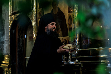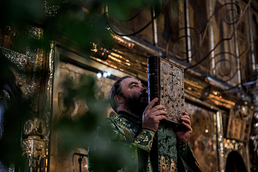 В канун престольного праздника Лавры в Троицкой обители совершили малую вечерню с акафистом и всенощное бдение