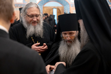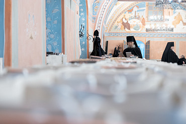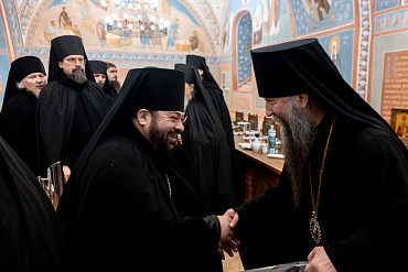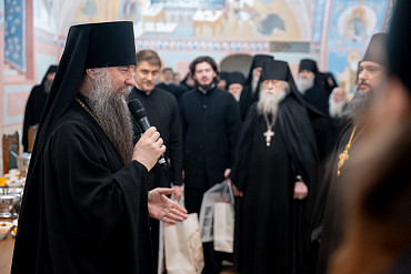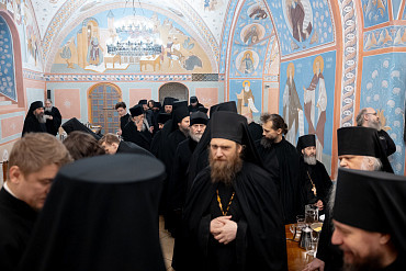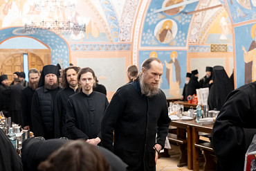 7 января, в день праздника Рождества Христова, наместник Лавры епископ Сергиево-Посадский и Дмитровский Кирилл встретился с насельниками обители в братской трапезной.
