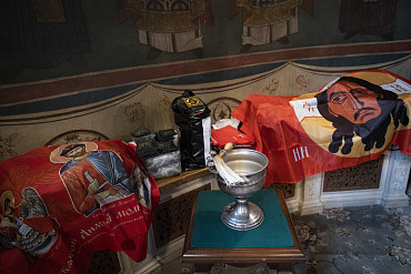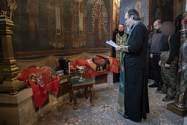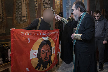 В Лавре освятили знамена и шевроны перед отправкой их в зону специальной военной операции