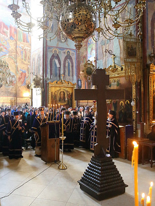 17 апреля 2014 года, Великий Четверг Страстной седмицы Великого поста. Вечернее богослужение - утреня с чтением 12-ти Страстных Евангелий в воспоминание Святых спасительных Страстей Господа нашего Иисуса Христа. Успенский собор Троице-Сергиевой Лавры.